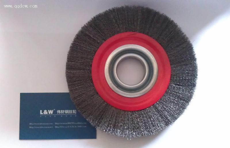 电池打磨钢丝轮—机平150产品参数:外径150mm,内孔16-32mm,厚度15-20mm,钢丝材质304#不锈钢丝,丝径0.2mm.
