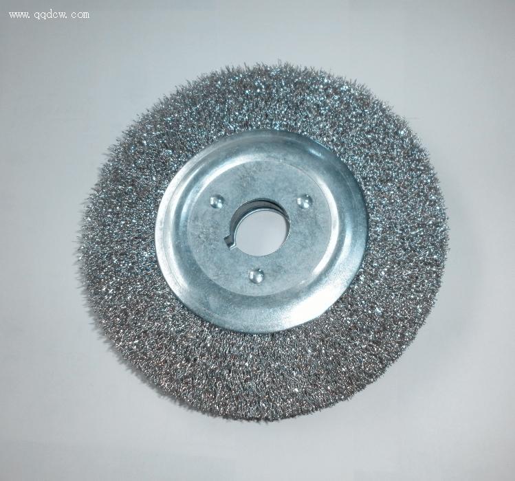 电池打磨钢丝轮-孔平型钢丝轮产品参数:外径150mm,内孔25.4mm,厚度20mm,材质304#不锈钢丝,丝径0.2mm。