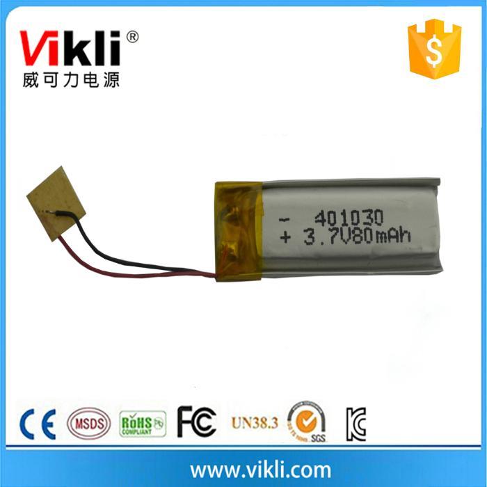 厂家供应401030-80mah聚合物锂电池