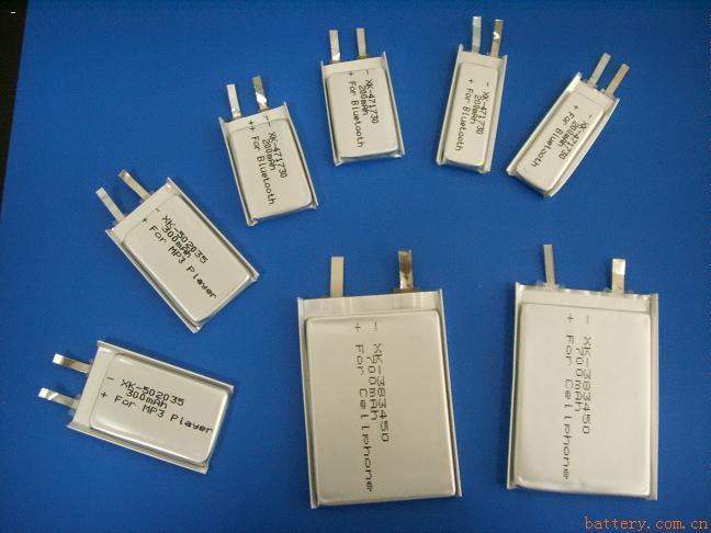 “锂离子聚合物电池”比较普通液态锂电有哪些优点? 1. 安全性:相比较金属外壳锂离子电池,“锂离子聚合物电池”不会爆炸只可能气鼓,由于安全优势更适合做容量1-10Ah电池. 2. 厚度:常见的锂离子电池是先做好外壳然后添加正极和负极。如果要求厚度为3.6mm以下,液态锂离子电池存在技术瓶颈。相反,“锂离子聚合物电池”不存在此问题,理论上的厚度可以做到0.6mm. 3. 重量:“锂离子聚合物电池”的重量仅为同等规格液态锂离子钢壳电池的40%,铝壳的20% 4. 容量:“锂离子聚合物电池”的容量比同等规格液态锂离子钢壳或者铝壳电池高10-15% 5. 内阻:目前我们产品的内阻可能降低到35mΩ以下,这是电池内阻业的一个创举。同等容量的电池,基于我们特殊的设计及原材料选用,对比同行,我们产品的使用寿命会增加20-50%. 6. 外形:灵活多样并可以特殊定制。 7. 放电:通过采用特殊的电极,电池有稳定的放电性能和高放电平台。 库存:054253、058120、065046、251258、459555、501230、601230、301430、401430、501430、401235、501235、601235、302019、271323、362025、402025、502025、602025、332029、401730、421730、471730、242030、252030、262030、282030、402030、502030、552030、582030、602030、372430、282732、402035、452035、502035、552035、262335、302525、302535、402535、452535、482535、502535、423035、303535、323535、584036、681838、603529、501646、401743、601753、422040、602040、501442、382045、402933、303033、423033、602840、303040、403040、503040、553040、803040、823040、303340、343340、403446、603446、903446、923446、372447、562447、402248、303048、403048、423048、503048、553048、603048、603048、623048、703063、383350、293450、313450、363450、383450、433450、553450、603450、643450、673450、983450、103450、113450、823458、333643、383643、554254、544754、432645、382755、122356、303753、903753、283759、303759、403759、503759、623758、843758、103759、654163、704163、405152、505152、555152、605152、655152、655555、305058、505058、843758、504060、704060、543562、383562、503562、705362、803562、614765、654765、476066、385068、505068、555068、614369、604390、505080、505280、605080、354084、345085、405085、305585、425585、465585、505085、605085、454586、604586、405590、602356、802358、824374、607274、4045100、4545100、3067100、4067100、5467100、4252106、4069114、6558113、5230130、5035135、5235135、5535135、5045135、5548135、6835135、6435146、7835146、6330160、4699166、4999166、553562、603090、703048、503396、533396、633396、753396、523496、633496、803496、853496、903562、6834125、7043138......新型号不断推出,信息不够全面欢迎来电查询.