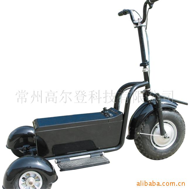 The new machine is a three-wheel buggy which you stand on like a scooter, with your golf bag strapped on ahead of you for easy access and a basket to take your accessories including drinks, waterproofs and scorecard. The three wheel all-terrain, stand on golf trolley is perfect for all golf users, young and old, and carries golf bags and players across all playing surfaces with comfort and ease. It''''s powered by a 750w brushless gearless electric hub motor and with its twist-grip or thumb throttle on the handlebars. Its unique folding design, combined with a detachable rear axle and battery packs, allows it to be neatly folded into the boot of a family hatchback. It has a range of 15-20 miles and can carry a total of 60kg plus its rider. It''''s simplicity itself to use; clip your golf bag onto the buggy, insert the ignition key, stand on the footplates, and you are ready to go. With a low centre of gravity design and wide track, the machine offers a stable and comfortable ride over even the most undulating of golf courses.