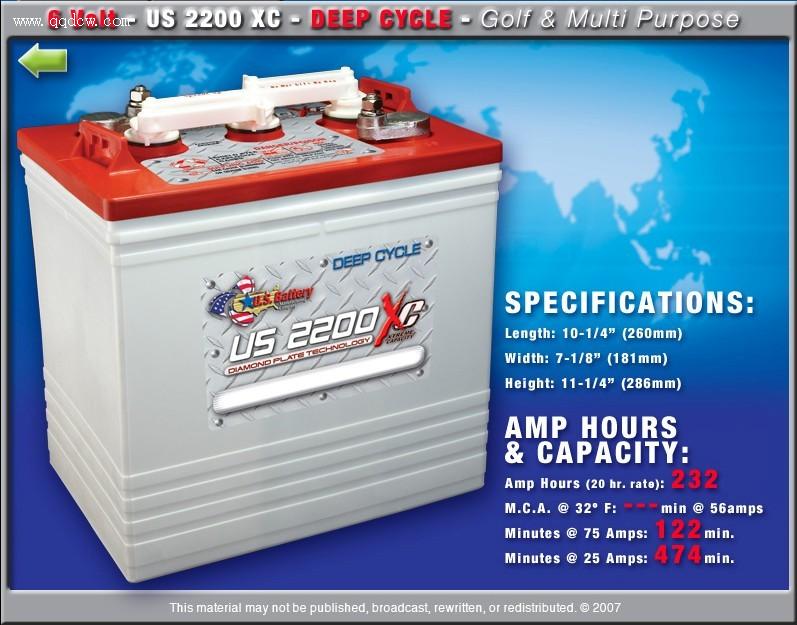 6V 232AH 美国US铅酸蓄电池 中国唯一总代理