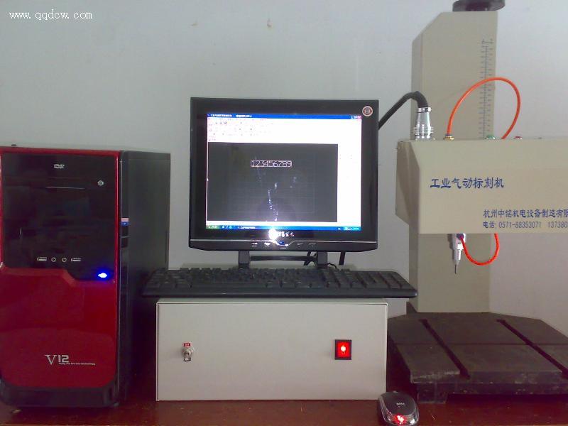 工业气动打标机是用于金属产品的机电一体化设备。由计算机控制打印针在X、Y二维平面内按一定轨迹运动,同时打印针在压缩空气作用下做高频冲击往返运动,从而在工件上打印出相应的标记。它融入计算机技术、电子技术、精密机械技术,广泛应用于各行业的产品工件上制作编码、流水号或文字图形标记,便于有效实施生产作业管理及产品质量跟踪,是企业树立品牌形象的有效工具。再配置Z方向同步旋转工装,可以实现圆周面标刻。