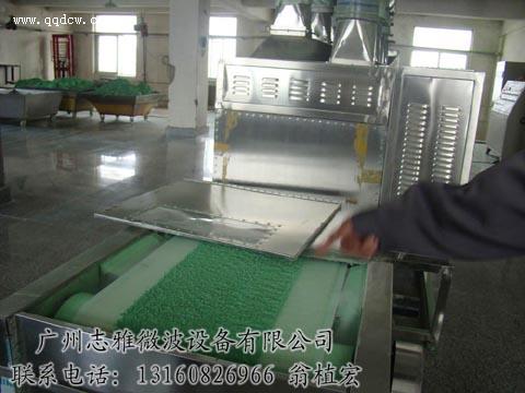 常规加热如火焰、热风、蒸汽干燥等都是利用热传导的原理,将热量从被加热物外部传入内部,逐步使物体中心温度升高,称之为外部加热。要使中心部位达到所需要的温度需要一定的时间,导热性较差的物体所需时间就更长。这些传统的干燥方法时间长、耗电量大,加热不太均匀,上下翻动,劳动强度大,而微波能干燥特点,微波能穿透物体内部里外同时加热,频率为2450MHZ,以每秒24亿5千万次的振荡,水分子也同样是万次的振荡,分子之间互相摩擦产生热量,自身发热,达到60℃以上水份逐渐变成水蒸汽经排湿管道排走。只因微波干燥设备是从物料体内加热,把物料水份向外迁移,脱水速度极快,能大大提高生产效率。