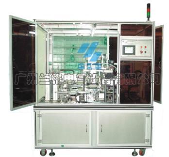 工作原理:此设备是使用机械臂左右运动时在两极限位拾取极片料,中间位交替放料叠片同时在左右运动时完成隔膜的Z型叠挠,如此往复实现整个电芯的叠片组装;机械臂采用直线伺服运动模块实现高速平稳准确;隔膜放料采用气胀轴加转矩马达控制恒张力,且放料过程中有电脑纠偏机构控制放料的整齐一致;极片料仓采用凸轮分割器转换不同的极片料,该设备具有自动贴胶纸功能。