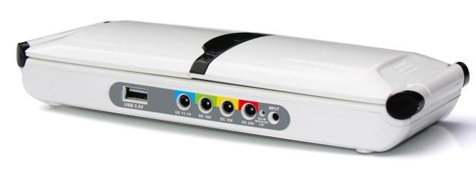 6、该产品具有五个输出口,DC输出口。为了避免插错,四个DC输出口用颜色区分:蓝色标贴输出口11.1V ,绿色标贴输出口16V, 黄色标贴输出口19V, 红色标贴输出口:24V 。