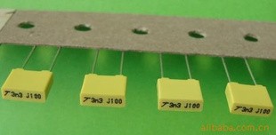 金属化聚酯膜作电介质叠层而成,导线采用镀锡铜包钢线单向引出,矩型阻燃塑料外壳和阻燃环氧树脂封装。具有体积小,重量轻,容量范围广,比率容量大、良好的自愈性,使用寿命长、适用于主要应用于旁路电路、隔直电路、耦合电路、计时电路、振荡电路、变频电路、滤波电路等,特别适用于显示器、电源、节能灯、程控交换机、音箱、音响功放、仪器仪表等。