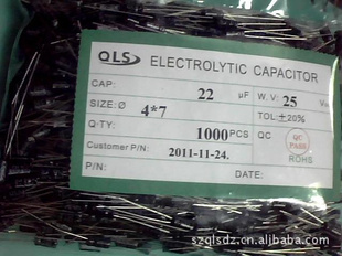 QLS 铝质电解电容22UF25V,体积4*7 稳定性强