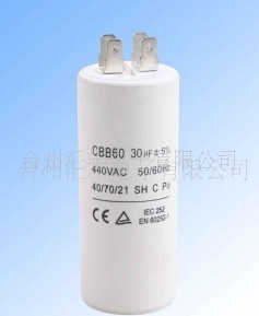 特点用途:该电容器采用锌铝边缘加厚聚丙烯薄膜为介质,环氧树脂直接封装而成,外形为圆柱形,具有高可靠性和稳定性。产品具有体积小、寿命长,并具有自愈性能,广泛应用于微型水泵、洗衣机、 清洗机、单相电机、空压机中作启动和运转电容器。