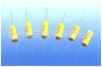 ★结构:聚酯介质,真空蒸金属电极,镀锡导线径向电焊於电容器两端面金属层,环氧树脂包封。★ 特点: 无感型,自愈性。 低耗损,高绝缘。容量、耗损随温度频率具高稳定性。极低内部温升。★ 用途: 谐振回路,适用于直流、脉冲高频大电流回路。 适用于要求体积小性能优的彩电S校正电路。★ 技术要求:引用标准:GB10190(IEC60384-16)温度范围:-40~+85℃静电容量误差:K=±10% J=±5%损耗角正切:≤0.1%(20℃,1KHZ)耐电压:1.5UR(5S)绝缘电阻:≥25000MR CR≤0.33UF ≥7500s CR>0.33UF (20℃,1min)